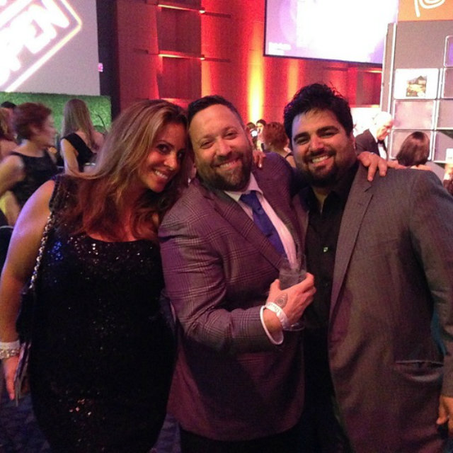 Victor Albisu (right) celebrates his Chef of the Year RAMMY Award with his wife Suzanne and Mike Isabella. (Photo by Josh Novikoff)