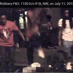 A group is seen following a man, dragging him backward, holding him down, robbing and punching him on surveillance video. The attack took place at approximately 1:50 a.m. on Sunday in the 1400 block of 5th Street NW.