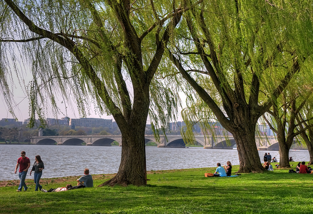 - Theodore Roosevelt Island (located in the Potomac River, near the Key Bridge—detailed directions here): History buffs will appreciate the chance to enjoy a picnic in the island’s Memorial Plaza, where you can lay your blanket in sight of a 17-foot tall statue of our 26th President. While there are no picnic tables on the island, you’ll find benches along the boardwalk with great views out onto the river.