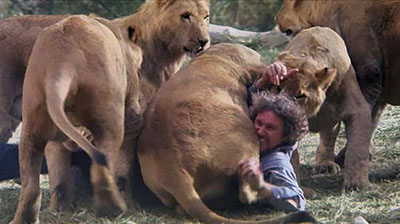 (Drafthouse Films)If you missed E Street’s midnight screenings of this cult classic a few months ago, the AFI Silver has brought it back for moviegoers who need to get to bed earlier. As I wrote in April, “Noel Marshall has only one credit as a director, a film financed in part by proceeds made from a little film he produced called The Exorcist. Roar, originally released in 1981, is unlike any other film—thank God! It started as a six-month production slated to cost $3 million, but it took 11 years and another $11 million to finish a movie that some think should have sent the director to prison. The trailer proudly boasts that no animals were harmed making this film—but that 70 members of the cast and crew were harmed. I didn’t actually count the names in the credits, but I reckon they’re about 70. The plot, as it were, turns on wildlife preservationist (Marshall) and his real-life family, then-wife Tippi Hedren, stepdaughter Melanie Griffith, and his sons John and Jerry. Marshall’s family pays him a surprise visit in Africa (though the film was largely shot in a California location that is now the Shambala wildlife sanctuary). The film strikes an odd balance between a gory nature video and an extended Benny Hill sketch in which his entire family runs for their lives. At one point, Marshall was hospitalized for six months; Hedren developed gangrene; Griffith required facial reconstructive surgery after being mauled; both Marshall sons suffered concussions; and cinematographer Jan De Bont (who went on to direct Speed) required 220 stitches after a lion tried to carry him by his scalp. Nobody really has to act here, and they don’t. But Marshall, in his only acting credit, has a strange charisma, like a deranged hippie woodsman set loose in the jungle with gorgeous wildcats as his untrained menagerie … in it’s terrible way, it’s essential filmmaking.”