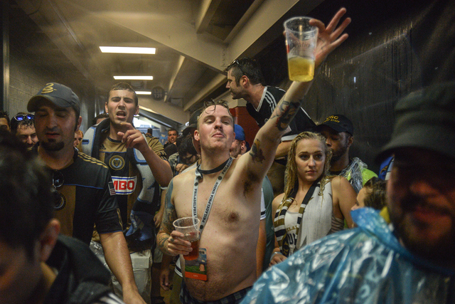 The match got off to an eventful start—just 15 minutes in, a powerful summer storm rolled through the area, and multiple lightning strikes postponed the match for some 45 minutes. The smattering of fans that showed for the match scattered, taking refuge under the stands or on the concourses. Union supporters danced, chanted and drank under the southern end of the stadium, making for a raucous scene.
