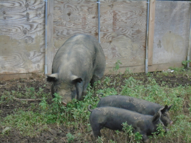 Pigs roaming at Cabin Creek Heritage Farm in Upper Marlboro, Md. Photo by Bridget Dicosmo.