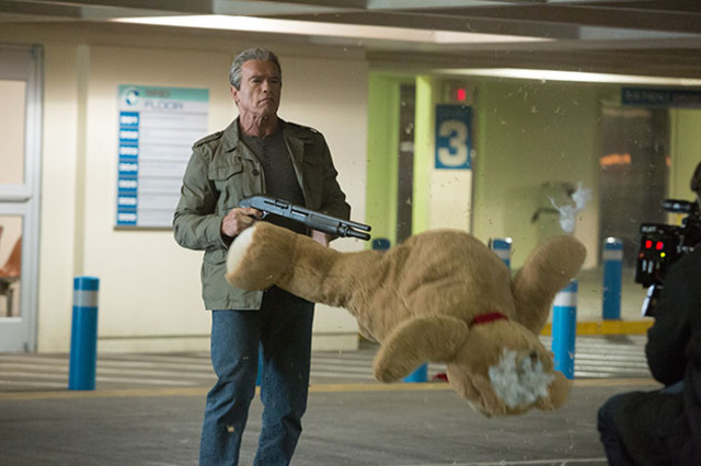 As the movie opens, John Connor (Jason Clarke), leader of the human resistance against the machines, sends Sgt. Kyle Reese (Jai Courtney) back to 1984 to protect Connor’s mother Sarah from a T-800 (Arnold Schwarzenegger) sent back in time to kill her. As Kyle travels through time, he has memories of his own alternate childhood, and once he lands in ‘80s Los Angeles he learns that timelines (aka previous franchise plot lines) have been altered. Sarah is now under the protection of Pops (also Schwarzenegger), a T-800 sent to protect Sarah when she was nine years old from the future Terminator model (again, Schwarzenegger).