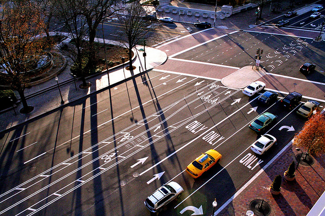 Update: DDOT has no immediate plans to install barriers between 13th and 15th streets along Pennsylvania Avenue, according to acting communications director Keith St. Clair. “The park-its are a good tool for 3rd to 13th St. But what works there isn’t necessarily best for down the street,” he said via email. “DDOT’s engineers are examining multiple proposals, accident data, signalization, benefit analysis and strategies” to determine what safety improvements should be made for the additional blocks. If park-its are found to be the best solution, DDOT will “move quickly” to install them, St. Clair said, but he declined to give a time frame for completing the analysis.