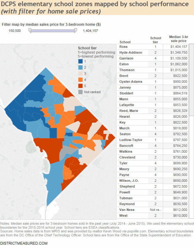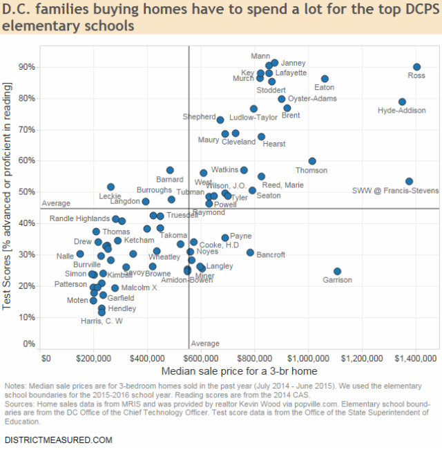 That real estate is more expensive in places where kids can get a better education is hardly a secret, but new graphs from the District’s Office of Revenue Analysis show just how closely they are correlated.