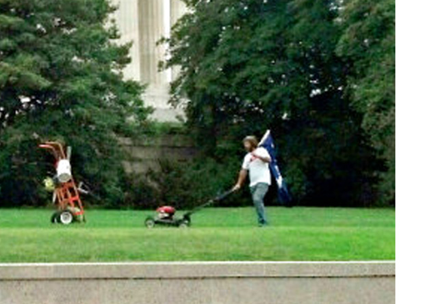 The curls have been shorn, the beard lost the scruff, the t-shirt replaced with a blue button-down. There’s nary a rake in sight. You’d never guess he is the Lawnmower Man, in fact, until he starts speaking. Then you’ll hear a familiar slight lisp, and the same seemingly limitless fervor that propelled him to keep the Mall spotless when the government couldn’t.