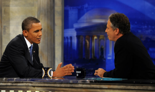 Remember that time Obama was on The Daily Show? Photo by Roger L. Wollenberg-Pool/Getty Images.