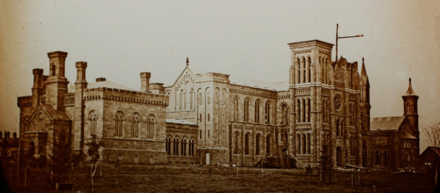 “The Smithsonian has hundreds of photographs in its collections of the Castle, but none of the building under construction, which makes this image quite remarkable,” said Richard Stamm, curator of the Smithsonian Castle Collection, in a release. “The photograph is important because it verifies much of the written history we have about the odd way in which the Castle was built—the wings first and the main central section last. It greatly adds to the historical record we have.”