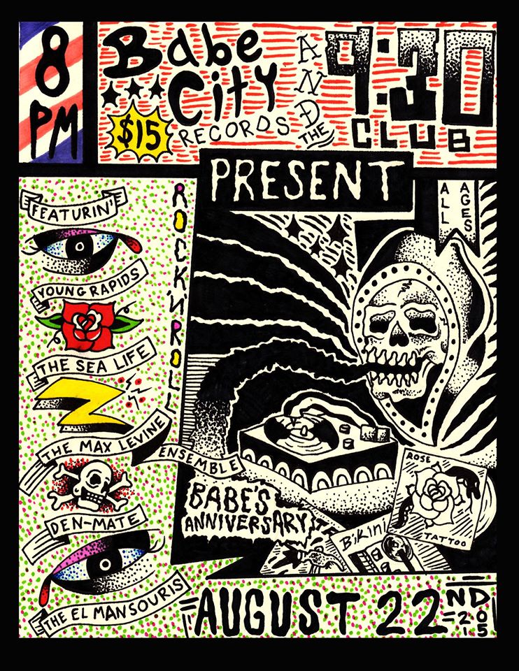 On Saturday, three of Babe City’s best—Young Rapids, The Sea Life, and Den-Mate—will play the 9:30 bash alongside D.C. pop-punk legeneds The Max Levine Ensemble (who are celebrating their own 15-year anniversary) and The El Mansouris, an experimental pop quintet. Strander sees the anniversary show as 9:30’s open invite to D.C.’s growing independent scene—the music connoisseurs attending slightly seedy basement shows instead of stadium blowouts.