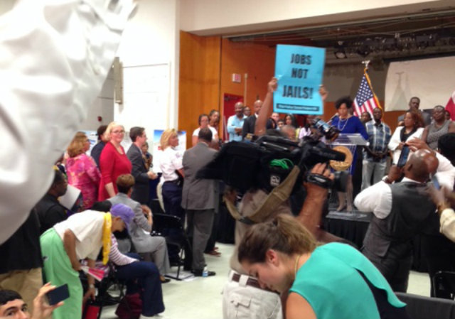 Amid chants of “We don’t need more police!” and “We want jobs!” a visibly frustrated Bowser struggled to deliver her speech that highlighted how her administration plans to combat violence in D.C. Among the new agenda measures announced is an increased police presence on the streets, especially in Ward 8 and other areas that have experienced a rise in violent crimes.