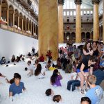 Visitors to the National Building Museum’s The Beach became impromptu wedding guests this morning. Expecting to walk into an empty, stark white scene, the first Beach-goers of the day stumbled upon a red-clad couple exchanging their vows.