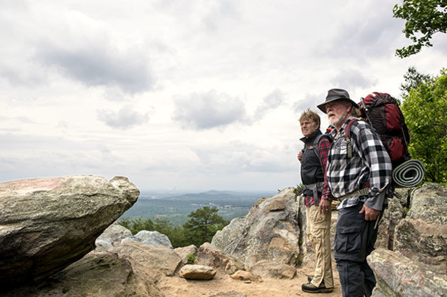 Robert Redford, who optioned the rights to Bryson’s book in 2005 and originally wanted Paul Newman to play Katz, plays Bryson, who as the film opens, is in the middle of an awkward television appearance plugging a paperback set of his previous travel books. The author, slightly befuddled before an unctuous host, is basking in the autumn years of his writing career, and his interlocutor charmlessly suggests that now that the Iowa-born author, who had lived abroad for 20 years, was back in America, he might want to write about home (hint hint).