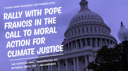 The rally will take place on Thursday, September 24 from 7:30 a.m. to 12:30 p.m. Pope Francis is slated to speak to Congress at 10 a.m., and the speech will broadcast on the Mall. After, he will make a brief appearance on the West Front of the Capitol.