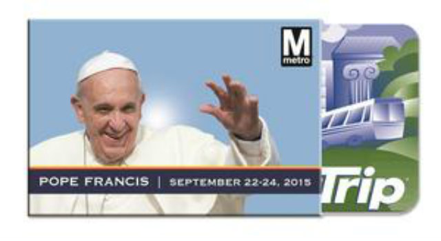 Pope SmarTrip: You probably shouldn’t leave your house during the visit, much less take Metro. But if you do, you can have the pope’s smiling visage staring back every time you pull out your SmarTrip. Starting today, all new cards sold at the five Metro sales offices will come with their own protective pope sleeve (until supplies last).