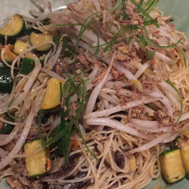 Get more entrees than you think you’ll need. Unless you’re one of Washington’s up and coming supermodels, you will want to try as much as you can, and the portions are for the most part nouveau-sized. My party of three sampled four dishes. Pancit Bihon Guisado is chef Tom Cunanan’s take on the rice noodles (that’s the bihon part—look for it at your local Filipino market) that are another Filipino staple, and it’s unlike any I’ve had before. The subtle but surprising difference is flakes of dried ginger that emit little bursts throughout a lemon oil-flavored plate.