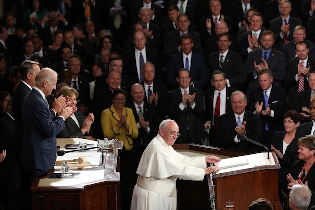 Pope Francis told the Chambers that he wanted to speak to the American public—“the land of the free and the home of the brave”—through speaking to them: “I would like to take this opportunity to dialogue with the many thousands of men and women, who strive each day to do a honest day’s work, to bring home their daily bread, to save money to build a better life for their families. These are men and women who are not concerned simply with paying taxes but in their own quiet way sustain the life of society.”