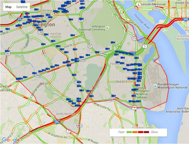 As part of an open data initiative, Arlington County is making the feeds from 180 traffic cameras publicly accessible. They can be watched, one at a time, on the county website. The feed cuts out after a minute to keep the bandwidth down but can be refreshed.