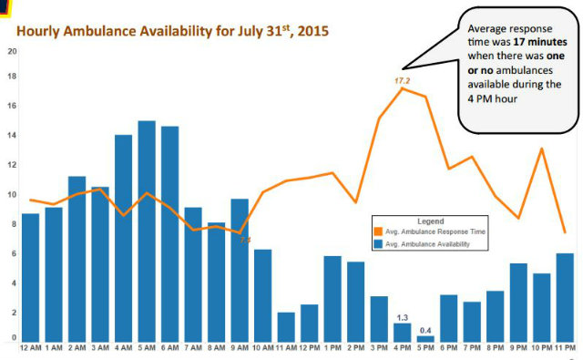 Hourly ambulance availability for July 31st, 2015 (Courtesy of D.C. FEMS.)