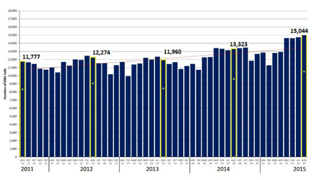 EMS call volume from 2011 to 2015. (Courtesy of FEMS)
