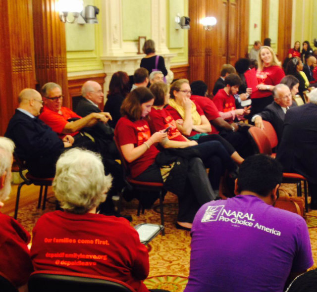 A group headed down to the Council to show support for the bill. (Courtesy of the DC Paid Family Leave Coalition)