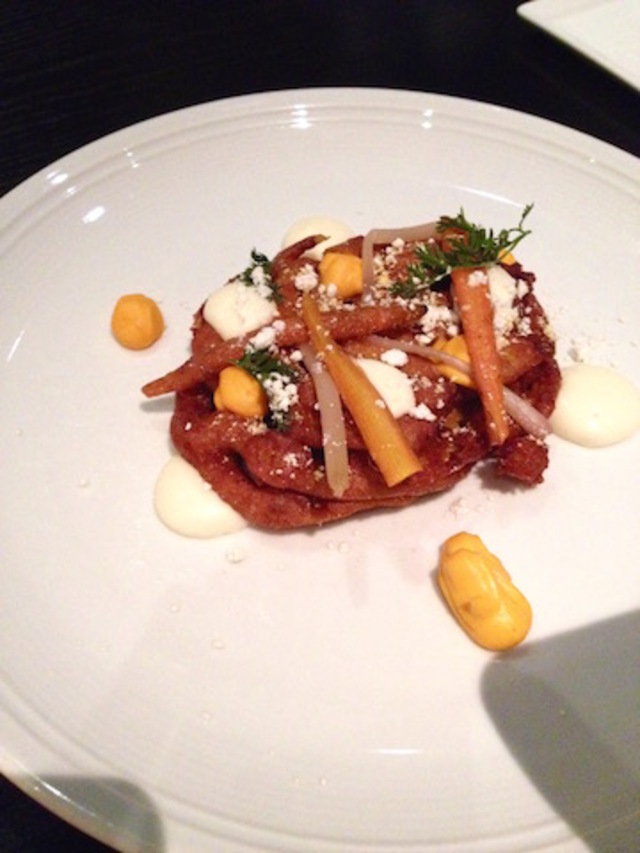 Executive Chef Benjamin Lambert is rolling out a new menu designed to defy expectations as well. The savory carrot funnel cake with burrata cheese, gooseberries and pickled onions, for example, is an appetizer that would traditionally be served as a dessert. Other unusual appetizers include bone marrow mole shortrib served in the bone, and butternut squash duck confit on steam buns. These are decadent starters you might find individually at many D.C. ethnic eateries, but it is surprising to find them so well-prepared at one restaurant.