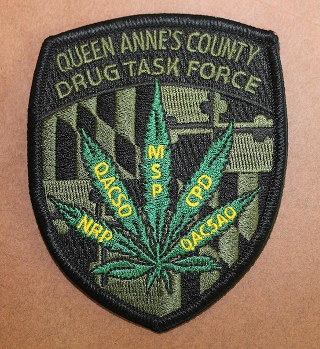 Meanwhile, the Queen Anne’s County Drug Task Force has a pretty sweet badge that will probably command a lot of money from stoners on eBay once weed is legal: