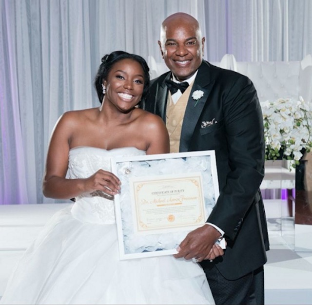 She posted on Instagram, “I was able to present a certificate of purity to him signed by my doctor that my hymen was still intact. Also the covenant he gave me when I was 13. When you honor God, your life will automatically honor others! I love you daddy.”