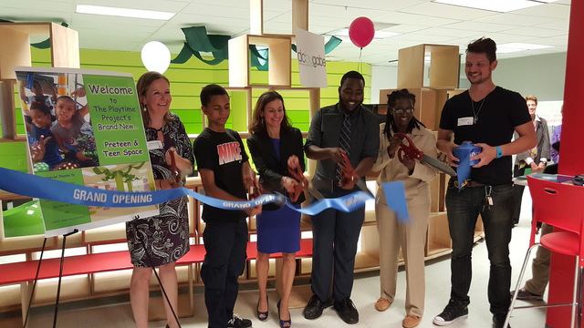 That changed on Wednesday night, when Playtime Project Director Jamila Larson cut the ribbon on a new space dedicated to both teens and pre-teens. Director of Human Services Laura Zeilinger and Councilmember LaRuby May joined the celebration.