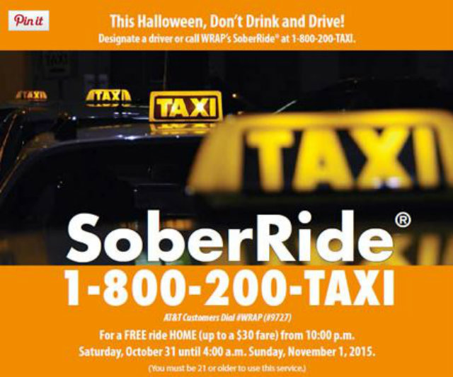 Between 10:00 p.m. on Saturday, October 31st through 4:00 a.m., anyone who is 21 or older can utilize the Washington Regional Alcohol Program service, which has been working to keep drunk drivers off the road during holidays for more than 20 years.