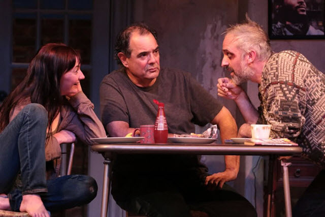 Katie deBuys, Edward Gero and Gregory Linington in The Night Alive at Round House Theatre. (Photo by Cheyenne Michaels)