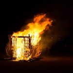 The burning of the ‘Temple of Essence’ was the highlight of 48 hours of events, which also included talks, yoga, and open mics. The all-white structure stood for two days, and the public was invited to write messages in chalk and bring in their booking documents and other papers. Then the organizers erected a twenty-foot barrier around the temple.