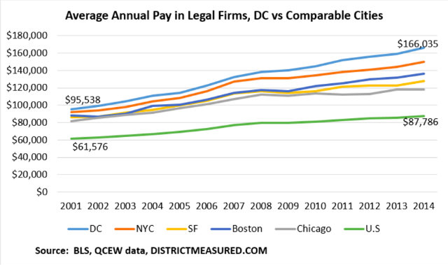 Data also showed that workers in D.C.’s law industry make nearly double the average of D.C. workers overall, which was $85,877 in 2014.