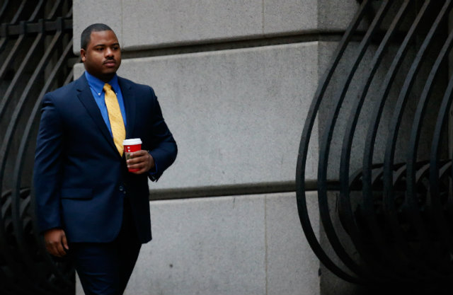 William Porter, one of six Baltimore city police officers charged in connection to the death of Freddie Gray earlier in the year, walks to a courthouse for jury selection in his trial on November 30, 2015 in Baltimore, Maryland. (Photo by Rob Carr/Getty Images)