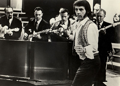 Phil Spector, backed by guitarists Barney Kessel, Bill Pittman, Don Peake and Herb Ellis. Courtesy of the Ray Charles Video Museum.Next month, I’m hosting a series of 35mm screenings at the Library of Congress’ Mary Pickford Theater. Tickets will be available next week for the first in a series of films that looks back at the music of 1966. The Big T.N.T. Show was the sequel to the 1964 concert film The T.A.M.I. Show. Its line-up may not be as legendary as that of its predecessor, but it still gives you performances by The Byrds, The Ronettes (filmed not long before they broke up), Ray Charles, The Lovin’ Spoonful, Donovan, Joan Baez, and Bo Diddley. Host David McCallum was then-star of the television series The Man from U.N.C.L.E., which received a Hollywood reboot this year. Visit a time when music was not yet complicated by streaming services and TMZ.