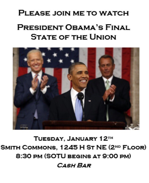 President Barack Obama will deliver his final State of the Union address this evening, and one thing’s for sure: bars around town have stocked up on booze to commemorate the occasion. Whether you plan to tear up with the president from sadness or relief, this isn’t an address to miss.