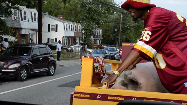 Zachary Reed: We met Floyd on Route 202/Landover Road. We used to see the pig in our neighborhood and wondered, “Who has a pig?” We saw it walking around the neighborhood like a dog. That’s how we found it.