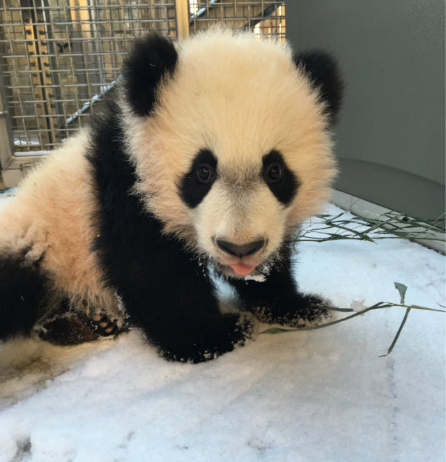 Well, the National Zoo is happy to oblige. It released photos of baby panda Bei Bei and his older sister Bao Bao in the snow yesterday. While Bao Bao is no stranger to winter wonderlands, and she seems more intent on her bamboo, it was Bei Bei’s first time experiencing the stuff.