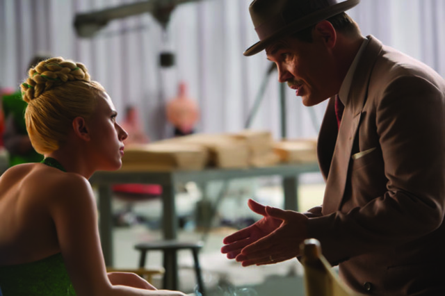 Eddie has an unusually high bar of integrity in an industry that may have no bar at all. He’s a studio fixer, trying to keep stars like Baird Whitlock (George Clooney) and DeeAnna Moran (Scarlett Johansson) out of trouble to varying degrees of success. Moran, a star of highly choreographed swimming pictures that she clearly holds in contempt, is a tough-talking dame who needs to find somebody to play daddy to her upcoming blessed event. Whitlock, currently starring as a centurion in a prestigious biblical epic, is kidnapped by a pair of extras who take the passive leading man to a writer’s group who quickly convince him of the benefits of Communism.
