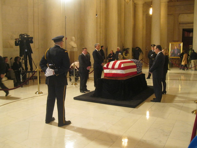 Doors remain open for the public viewing until 8 p.m. A private service for the justice will be held tomorrow at the National Shrine of the Immaculate Conception.