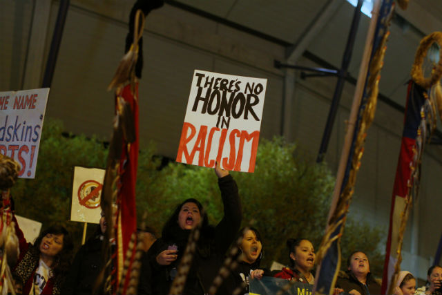 Native Americans protest before the Minnesota Vikings and Washington game in Minneapolis. (Photo by Adam Bettcher/Getty Images)