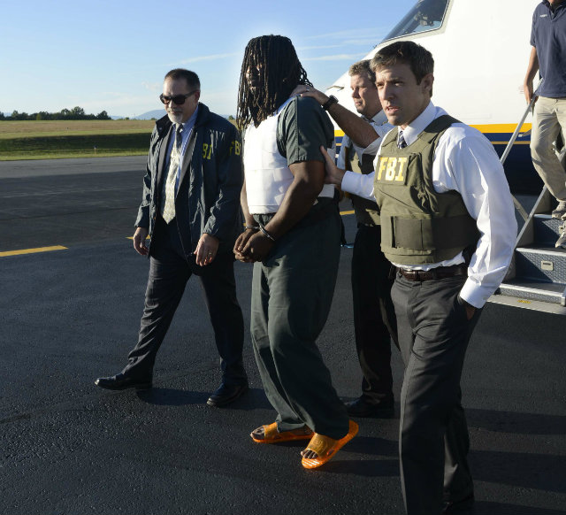 Jesse Matthew is escorted by FBI agents into the custody of the Charlottesville Police Department in 2014 in Charlottesville, Virginia. (Photo by FBI via Getty Images)
