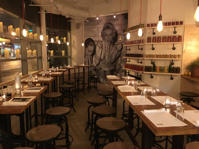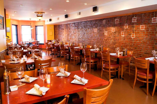 The intimate dining room at Adams Morgan newcomer Red, White & Basil. (Josh Novikoff)