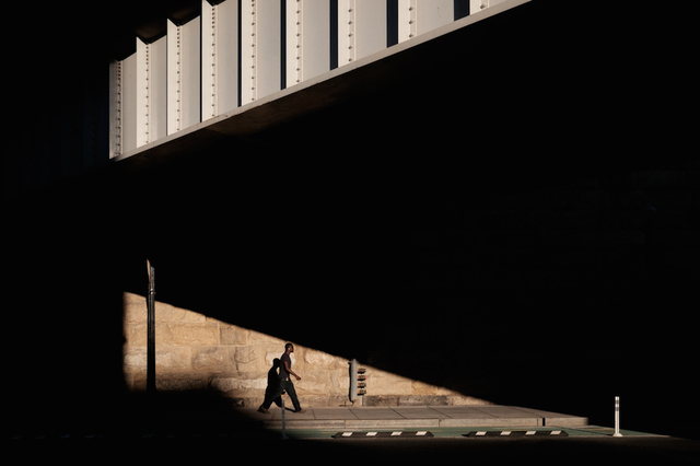 My favorite part of each new exhibit is the look back on what unusual things happened around the District. There’s a great photo by Holly Garner from Pope Francis’ visit—except, in the perfect Exposed-style twist we’re always seeking, the photo isn’t of the Pope, it’s of a gaggle of reporters lounging around camera scaffolding in front of the White House, waiting to get to work. There were so many fun images of The Beach at the National Building Museum, but none like Noe Todorovich’s double exposure that highlights both the surreal-ness of the event and the grandeur of the architecture around it. But then there are images like Messay Shoakena’s Best In Show winner of a man walking outside Union Station framed perfectly in bold shadows. Which reminds me that great art is around us all the time.