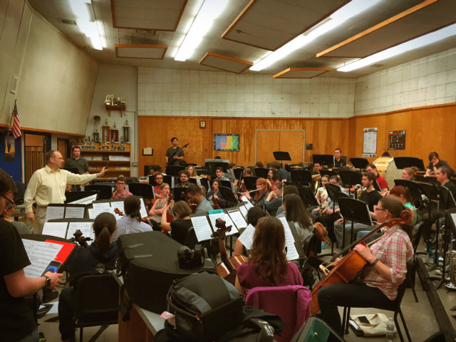“There’s very little sheet music out there that you can purchase for full orchestra and chorus,” Garner explained before the rehearsal. “Our team goes through a long process of listening to the music over and over and over, and writing out the songs a handful of notes at a time.”
