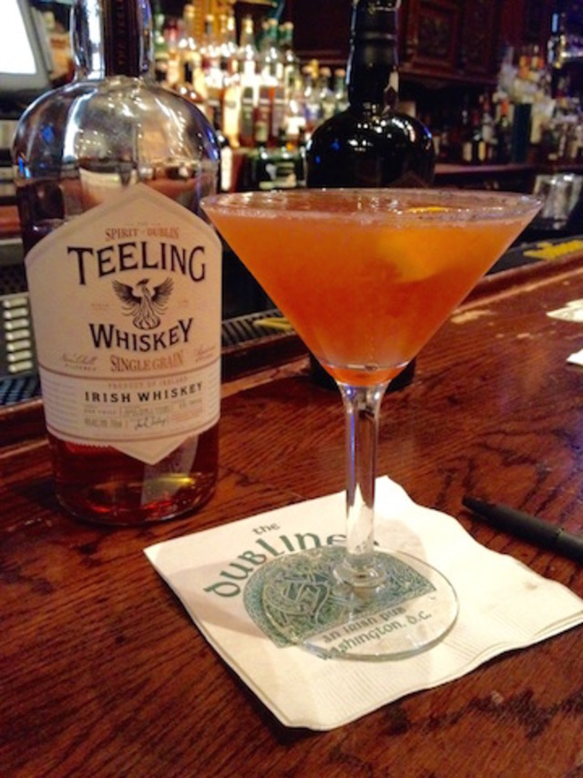 I began my exploration of Irish cocktails at The Dubliner (4 F Street NW), where bartender Misha Simon was kind enough to make an Irish Kilt according to my recipe. I chose two ounces of Teeling Single Grain Whiskey, which owes its rich malty and honeyed character to aging in sauvignon blanc casks. Add to it an ounce each of blended scotch, lemon juice, and simple syrup, finishing with a dash of orange bitters. Shake and strain it into a cocktail glass, and you have a great unifier of Celtic spirits. The Shetland Pony is another classic Irish cocktail I enjoyed there, featuring three-quarters of an ounce of Irish Mist, a whiskey liqueur, which is shaken with two ounces of scotch and a dash of bitters and then served up.