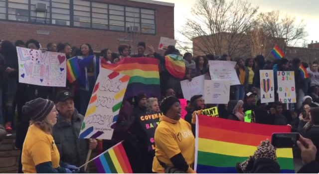 A couple years ago, about a dozen members showed up at Wilson High School in Northwest. And much like today, students along with their openly gay principal and members of the community responded with A+ signs promoting love and acceptance.