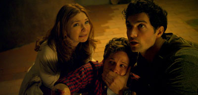 Brigid Brannagh, Kris Lemche, and David Alpay (Best Served Cold Productions)The crew of a real estate reality show travels to Eastern Europe to follow up on a fixer-upper in the remote forests of Moldava. But when they run afoul of the locals and their legends of witchcraft, the TV crew is forced into hiding. This entertaining and eventually gory horror show is a found footage movie with one difference: there’s a reason everybody has a camera. There’s something else different about They’re Watching: it’s a pretty good found footage horror movie. After a preview of the coming carnage, the movie begins with a slick satire of real estate reality shows where prospective American home buyers look at a traditional old world kiln and decide it would be great for their pottery. The intruding Americans may make fun of the locals and their traditions, but the movie is clearly on the side of the locals, who are simply defending their territory from vapid newcomers. The movie descends into B-movie chaos, but that’s part of it’s charm, and I suspect that underneath the usual horror movie tropes this is really an allegory of gentrification and colonialism.