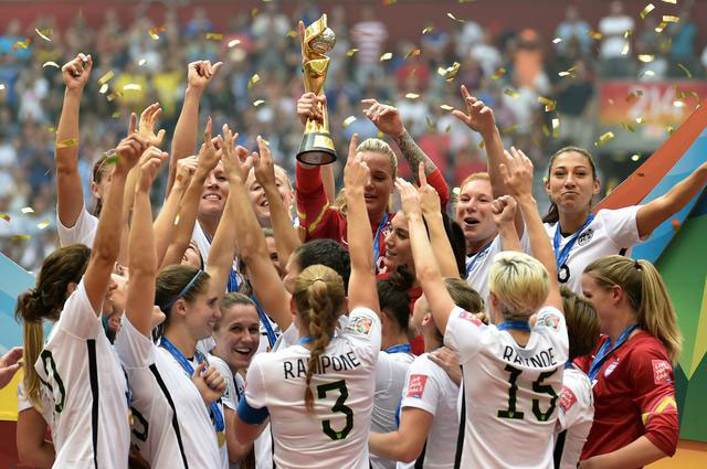 The 2015 USWNT with the World Cup trophy (Getty Images)