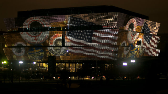 The exterior of the National Museum of African American History and Culture during a temporary video installation in November. (Photo by John Sonderman)