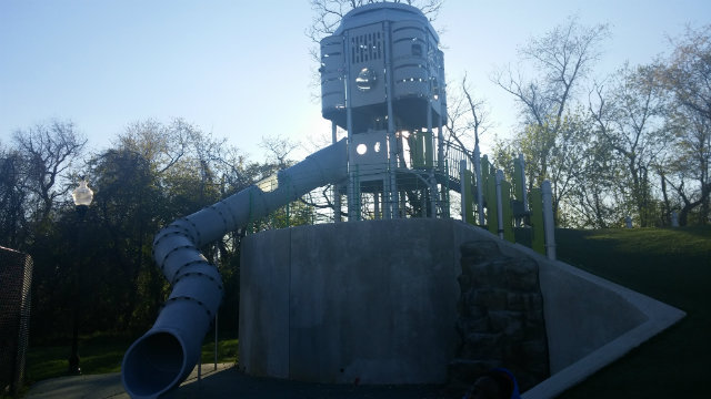 FORT GREBLE PLAYGROUND: Kids who love slides will enjoy this playground because it’s mostly made of slides—there are six of them. Three of them are little, two are bigger, and one is really big. I like the big slides because they are more fun than the little ones.